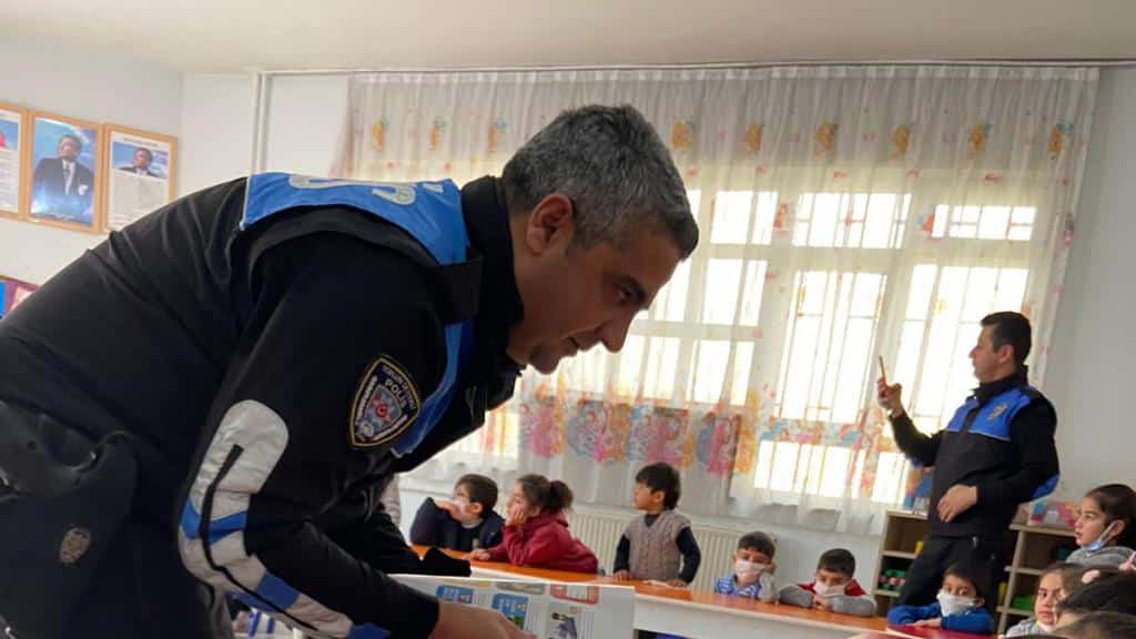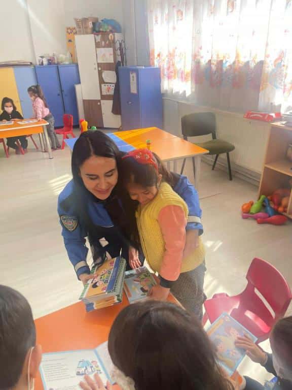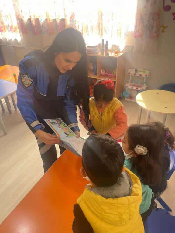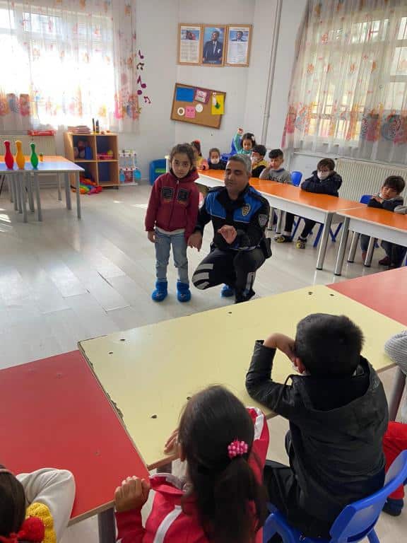 Polislerle trafik eğitimi ve polislik mesleği tanıtıldı.Çocuklarımız memur arkadaşlar bilgi veririken ilgiyle onları seyrettiler.